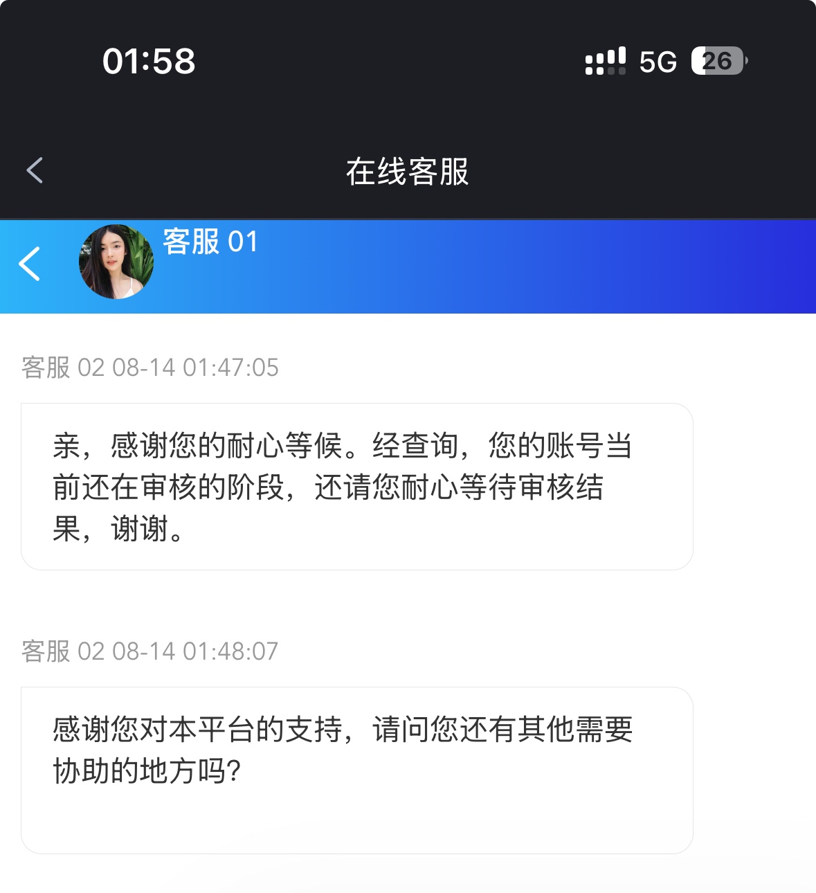 短信特邀9块玩到200不给出款账号冻结 联系客服 账号需要审核 不给游戏不给提款 一直卡着审核