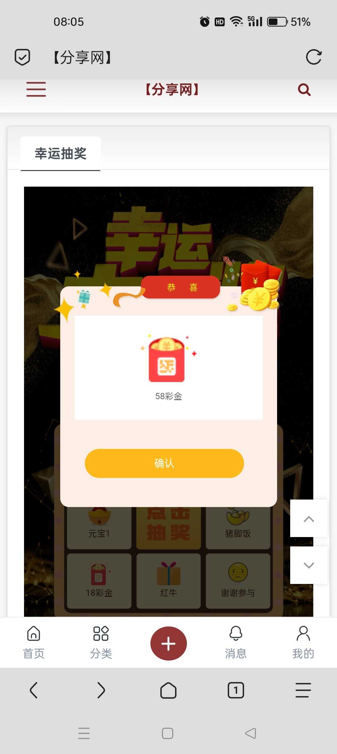 抽奖中58彩金