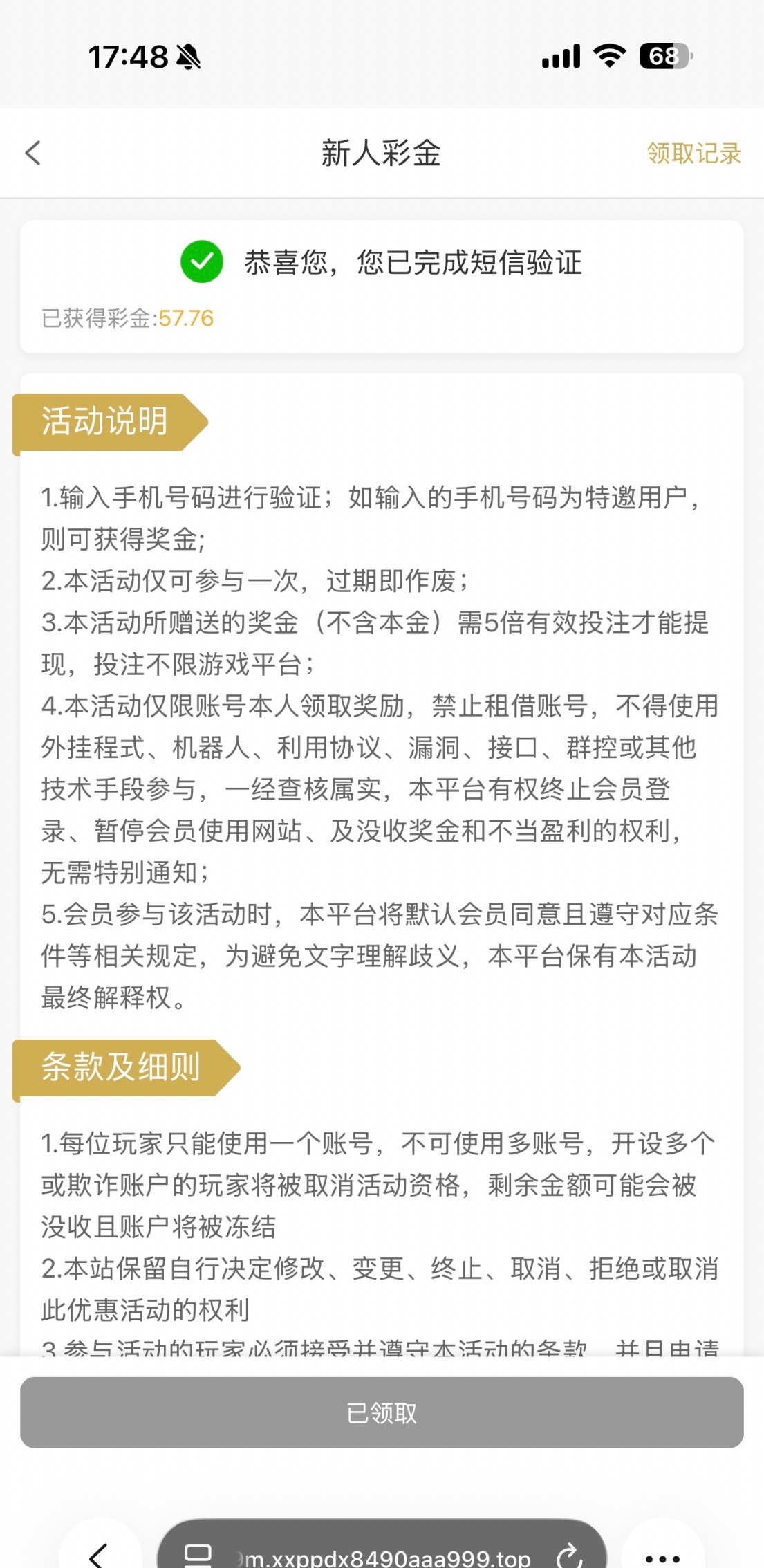 短信验证给了50多,链接22308.vi
