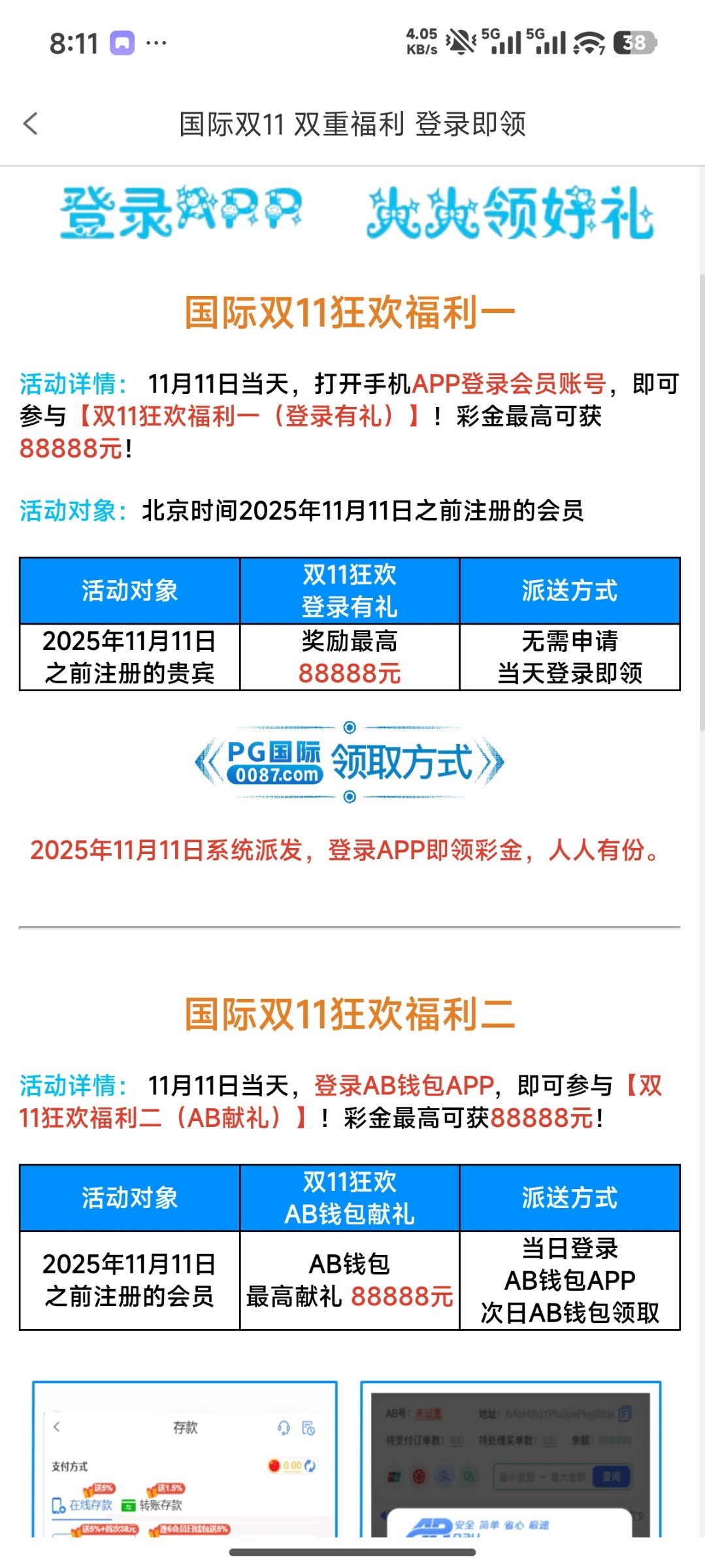 008系列平台11.11登录AB钱包活动