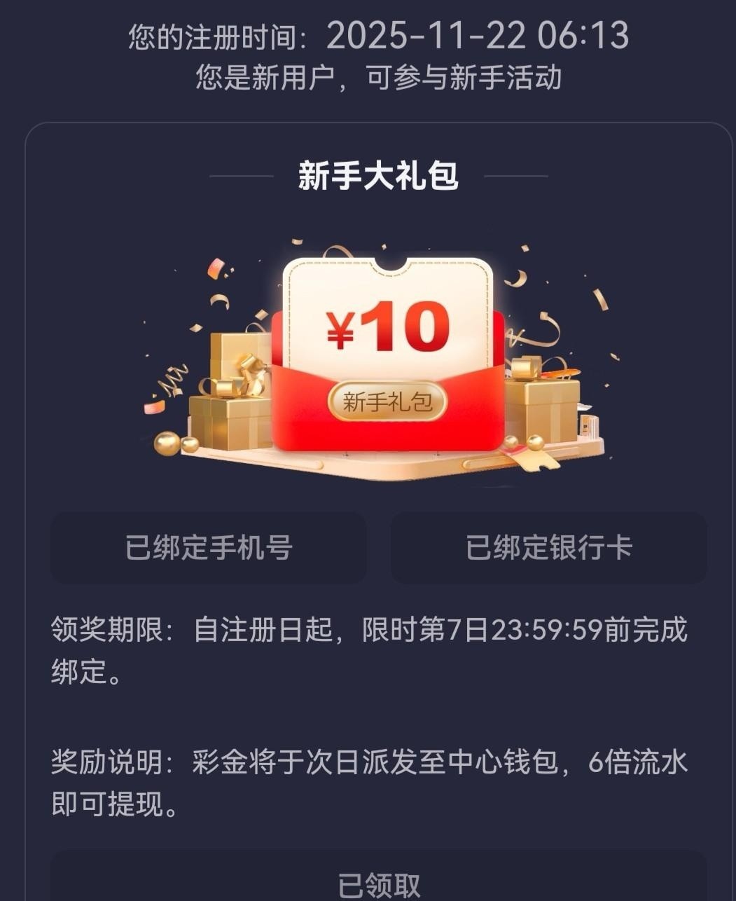 注册绑定手机银行卡送10,隔天到
