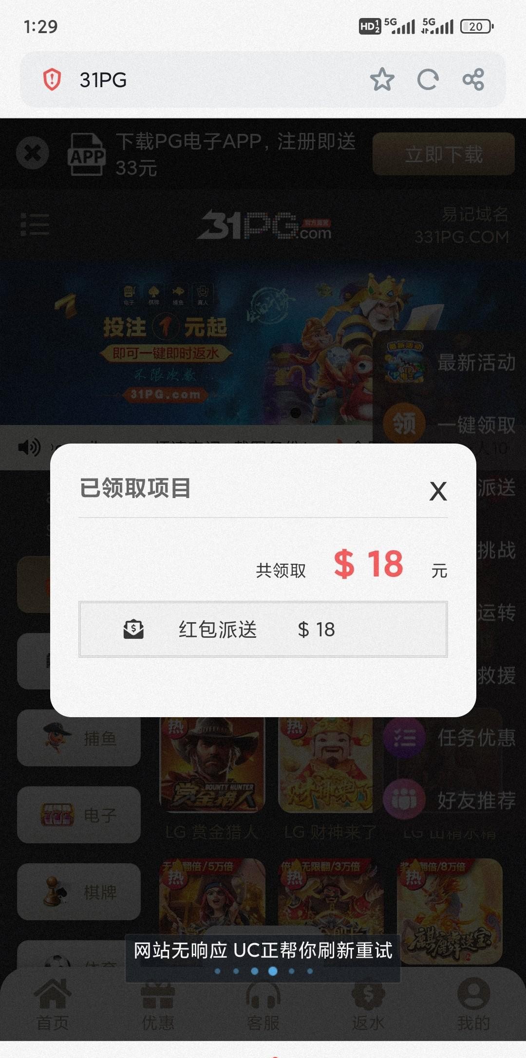 31pg.com 电话回访彩金登录领取,漏接电话的老哥们看看