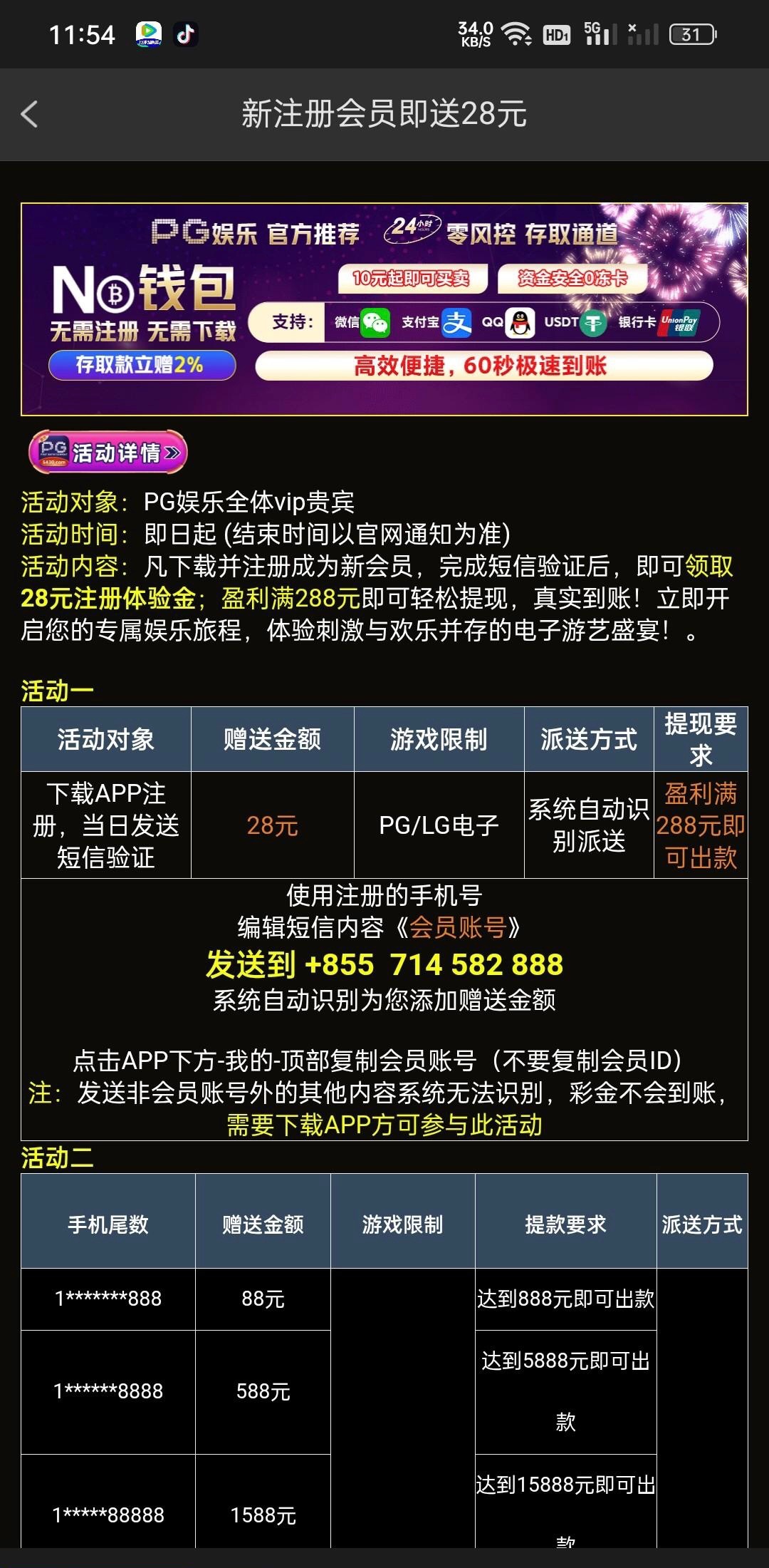 【PG5430-注册发短信送28】
