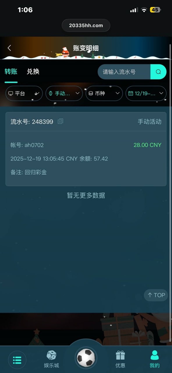 【幻影娱乐】回归彩金28元
