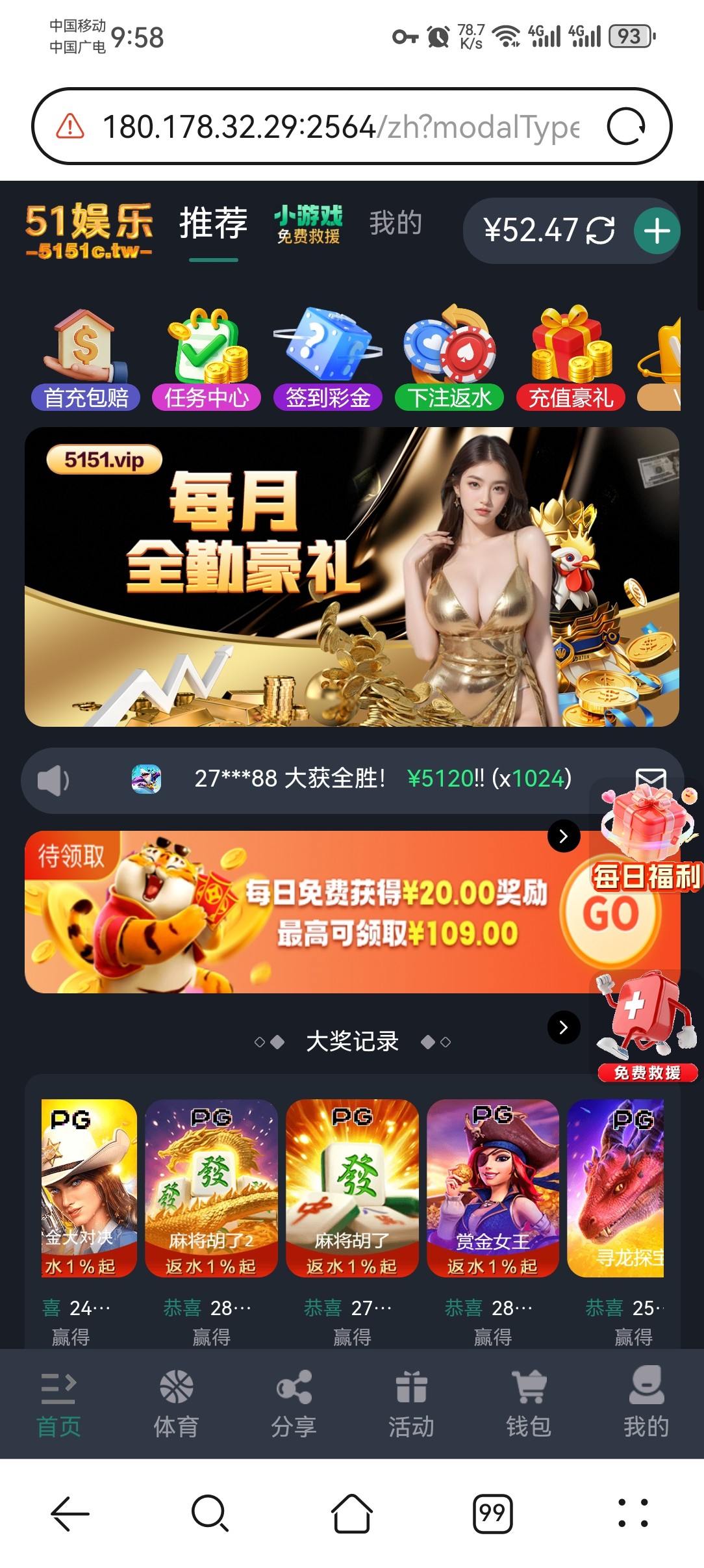 点:注册下载 就能打开网站,自己斟酌撸款白嫖,我打了20几个号,出了一个1200一个600,清除浏览器数据换ip重新撸,点签到宝箱没提示“ip已签到”就能继续干,还有出款不要出同名,找朋友拿支付下