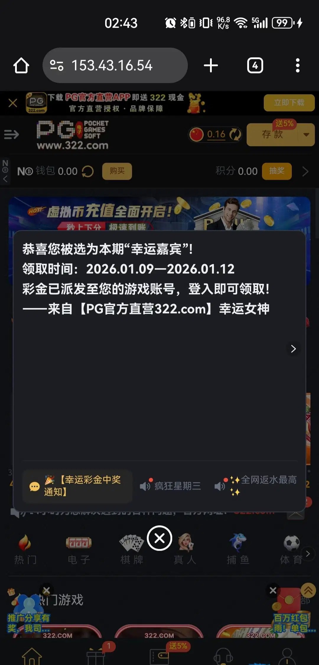 已经大半年没有充值过了,虽然最后没打出来。有号的可以登录看看,送了88幸运彩金链接322.com