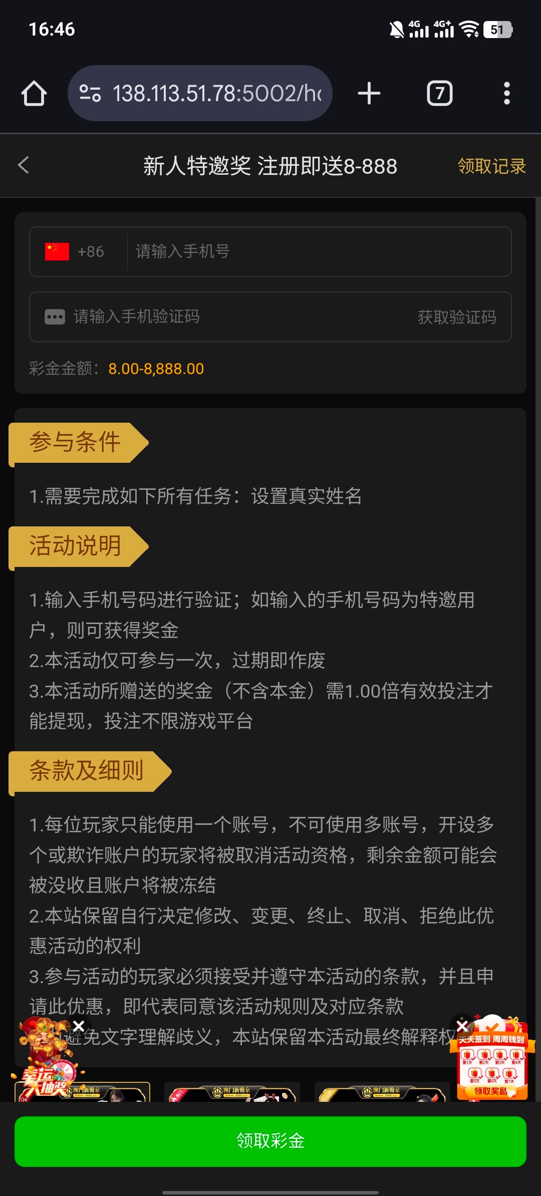 注册账号 绑定信息填写常用白嫖彩金手机号码 自助领取一下
