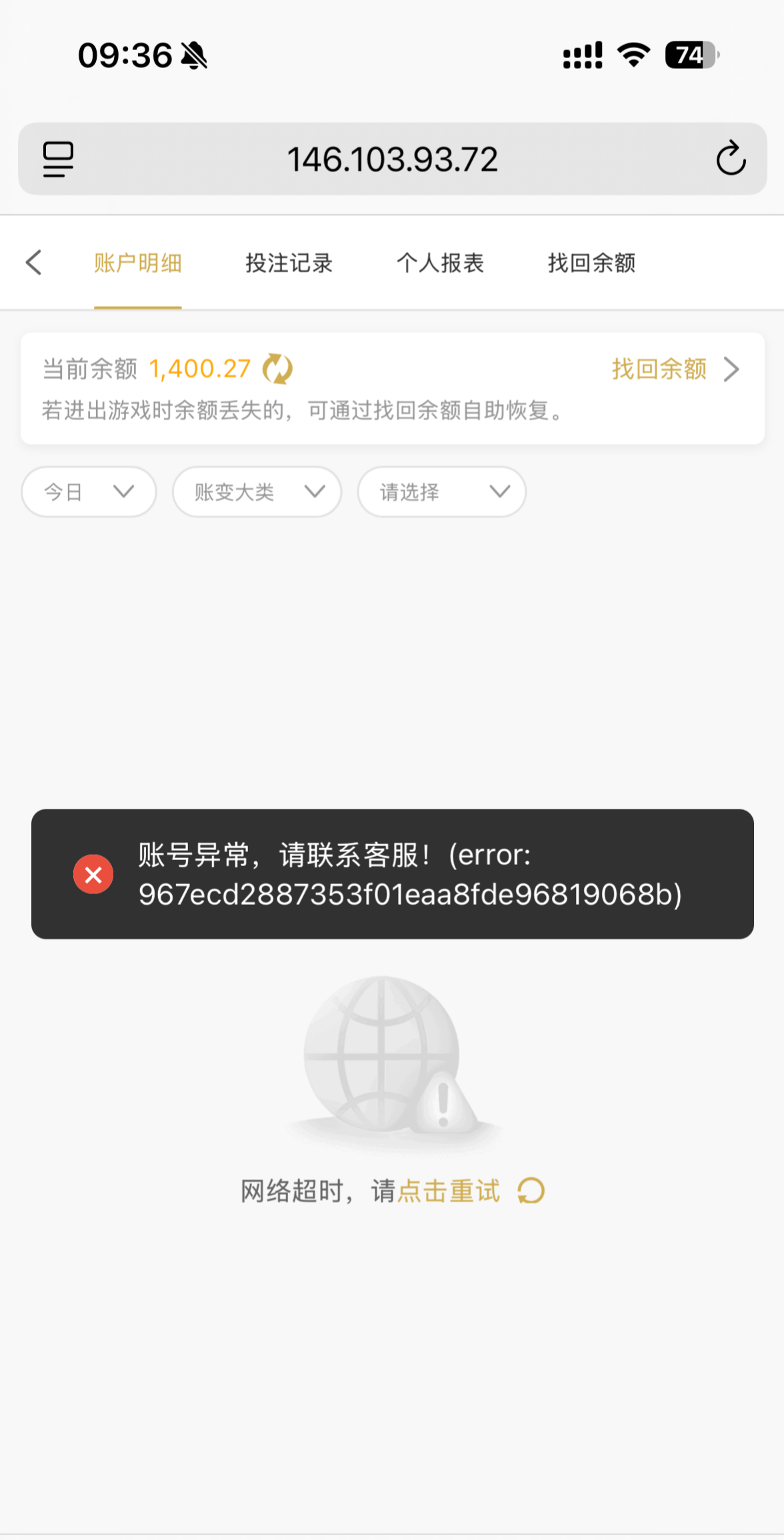 狗台子估计很多人有在玩,注意一下吧这个台子以前一万以上也出过,今天裸充200打到1400开始黑款了直接找理由说多ip