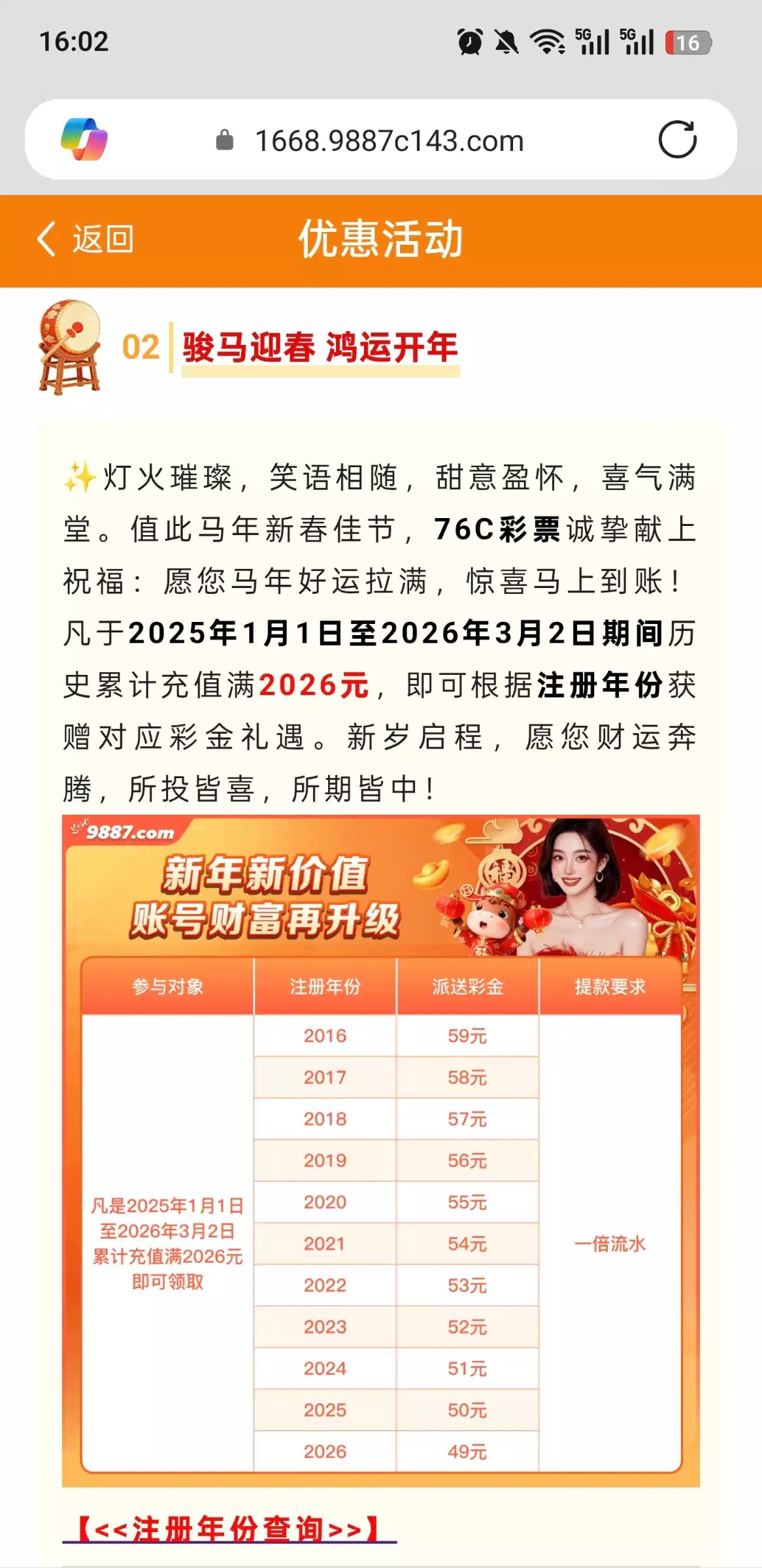 去年到现在充值满2026领彩金